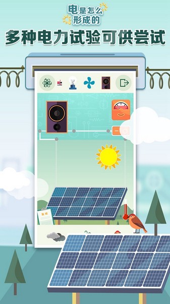 作为一款寓教于乐的科学游戏,电是怎么形成的中为探讨电力的由来,主要分为电解质发电、水力发电、火力发电、太阳能发电四个方面带你走进电力的世界,那么游戏到底该怎么玩?一起来看看吧!