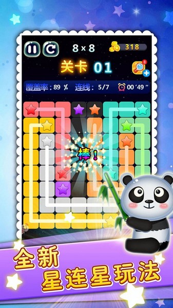 5.当关卡中所有的星星都被连接起来,同时没有空位的时候,玩家就能完成这个关卡进入下一关。