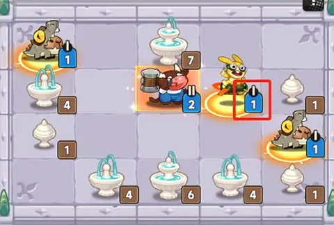 我们不难看出投手熊的扩散是对左右两个格子内的萌宠有效,所以合成投手熊的时候我们尽量保证,他的左右两边是有萌宠或者障碍物的,萌宠的站位,和他升级扩散的收益最大化是我们应该去考虑的问题,而不是不考虑一味的直接去合成。