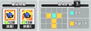 顾名思义,进化扩散可以提升周围英雄的战斗力,或破坏周围的障碍物。每个品质每个英雄扩散的范围是不一样的,我们以大家最开始获得的投手熊为例。