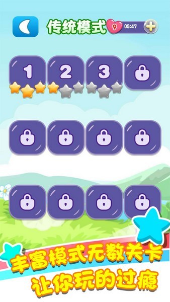 3、丰富的关卡:游戏提供了大量的关卡供玩家挑战,每个关卡都有不同的难度和图案组合。