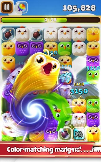 可任意移动没有被其他方块堵住的小鸟方块,,聚集三只相同小鸟就可爆破小鸟方块,如果聚集四只以上就可形成超能"power bird"如果能聚集更多的话,产生更大的爆炸,甚至是吞噬一切的黑洞。