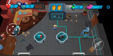 在这款游戏的每一关中都存在有若干个房间,你必须清掉所有房间里的所有怪物才能进入该关卡boss关卡,每一关的最后一个关卡就是boss,可爱的boss形象设计,制作的非常萌,而且它的攻击也是可以被障碍物挡住的,玩家要合理的利用建筑物敌方怪物的袭扰,并在适当的时机给予boss沉重一击,期间你还要不断的依靠走位来收集发射出去的子弹,或者你还可以用钱、钻石购买角色、枪、子弹等,这里的每种角色都有特殊的奖励加成,而枪的主要作用是是射程和瞄准加成,子弹是伤害加成,温馨提示玩家,在选择购买时优先推荐先买枪,因为别的都不重要,但是射程越长你越安全。