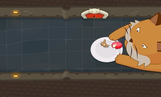 返回房间的间谍鼠移动速度增加,但时间有限。玩家需要把握好这个时机,跟在房间中间的黑猫身后,利用粉色房间的杯子作掩护,拿到最后一块奶酪。在利用最后一个杯子掩护,逃到大门外。