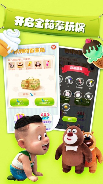 1、全新养成玩法,在照顾熊大熊二的饮食起居中与熊大熊二一起成长!