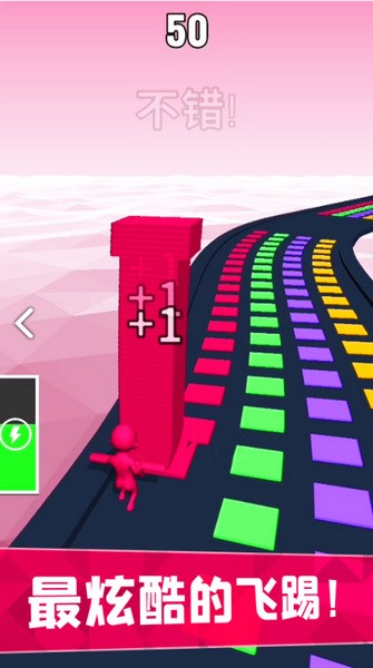 魔性解压的娱乐体验:通过收集相同颜色砖块并踢倒,感受轻松解压的乐趣。