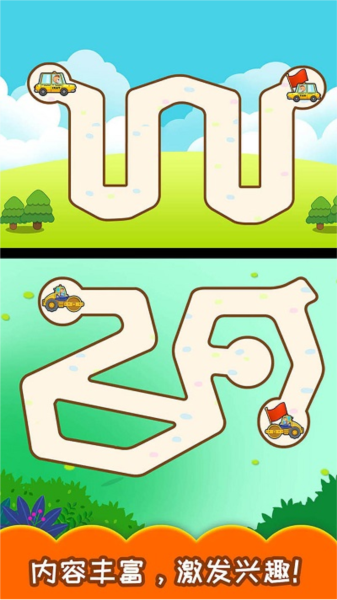 4、画面卡通欢快,制作精美,考验宝贝智力的时候到了,快来一起玩汽车迷宫吧