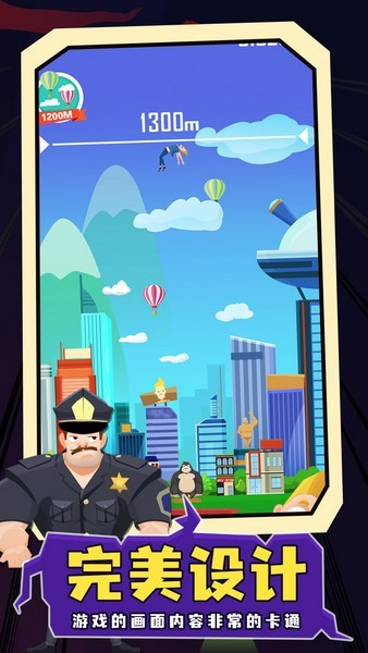 3、抛出人物会飞到空中,人物抛得越高得分就越高。抛出人物后在将要落地时再次点击屏幕,可以将游戏人物再次抛出。累计抛出的越高,得分就越高