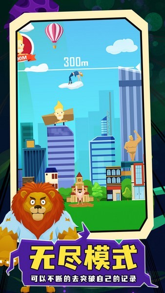 玩的时候感觉自己像个超级英雄,视角还会随着高度升高,看着人越飞越高,成就感爆棚!游戏里还有排行榜,可以和其他玩家比分数,挺有竞争性的。每次打破自己的记录都很开心,忍不住想再试试。