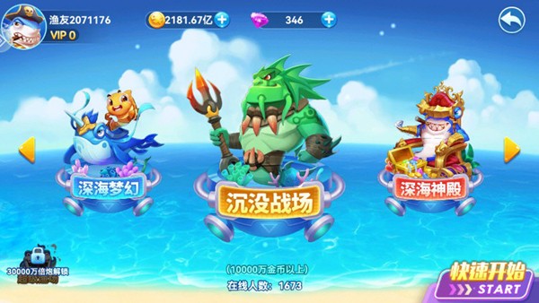 画面华丽升级,重新定义捕鱼游戏品质。超高清3D画质,影视级视觉享受。风情万种的美人鱼、神秘尊贵的神龙太子、坐拥万金的史前巨鳄、未来科技的机械狂鲨、掌控黑暗的远古暝兽等,华丽酷炫的BOSS觉醒特效,全方位打造次世代捕鱼游戏,给您身临其境的沉浸式体验。