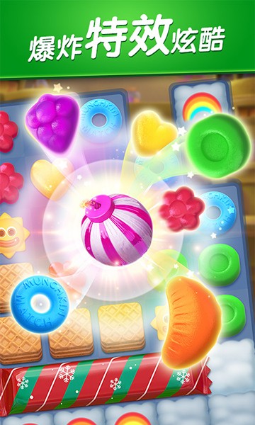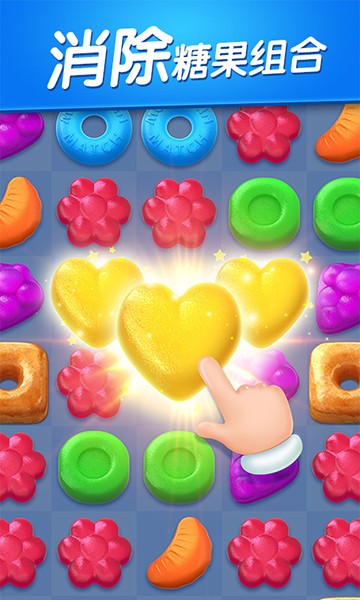 2、你需要将三个颜色相同的糖果连成一条直线即可消除;