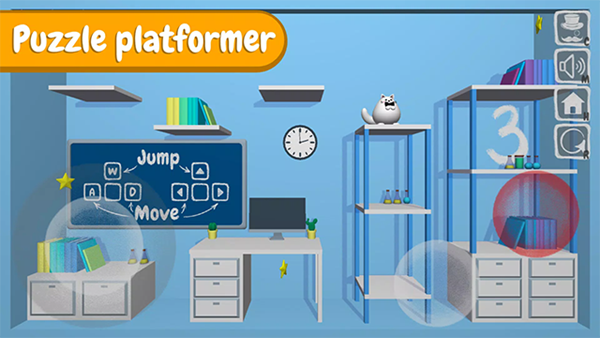 1、让猫咪跳跃到最高的台阶,获取第一颗星星。