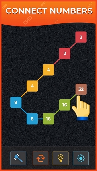-在八个方向(上,下,左,右或对角线)中的任意一个上滑动相同的数字以将其合并。