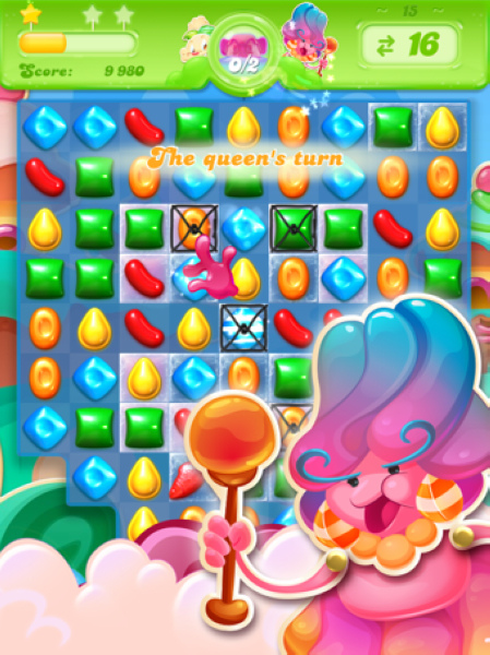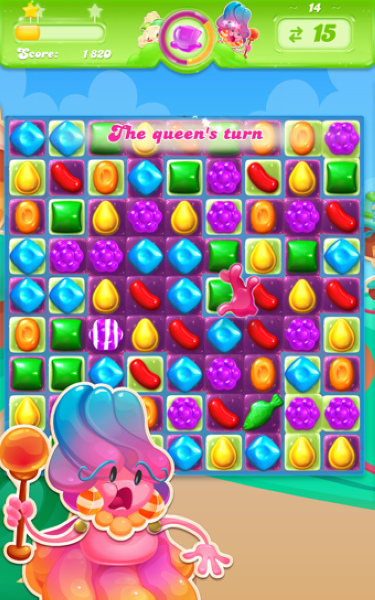 二、新增玩法:除了基础的消除之外,在糖果果冻传奇对战关卡中玩家需要和果冻女王进行回合制的对战,玩家与果冻女王需要将自己的果冻尽可能多的占领地盘,而如果玩家没有能够在规定的步数内完成占领任务那么就会被判定失败。而在寻找小淘气的关卡中,玩家需要将场景中的冰块粉碎,找出隐藏在冰块下的小淘气,它们可不会坐以待毙,所以尽可能的粉碎冰块让它们无路可逃吧。