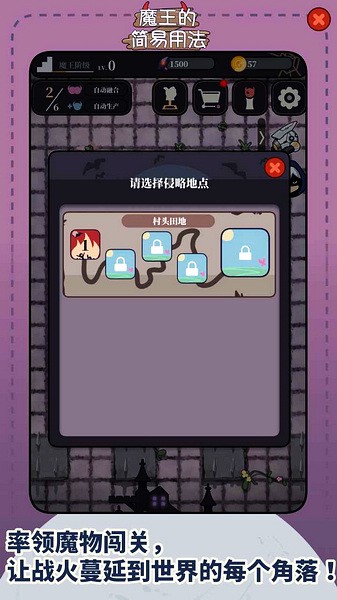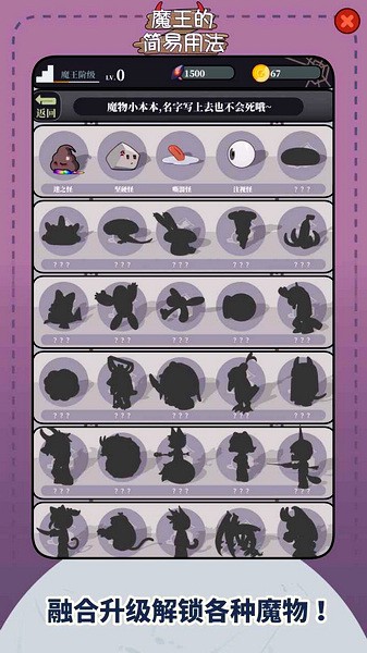 魔王的简易用法无限金币魔晶版是一款非常好玩的休闲合成类游戏,主打的就是放置挂机以及合成的玩法,玩家们需要将各种小小的魔物不断进行合成,只有合成才能产生出更加强力的魔物,利用这些魔物去攻击人类,占领更多人类的地盘,此版本使用金币和魔晶不减反增,大家可以随意对魔物进行升级,还能解锁更多的角色和关卡,玩法更加多样。