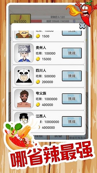 6、升级后你可以增强吃辣的能力,然后点击挑战,像全国最强吃辣省份挑战;