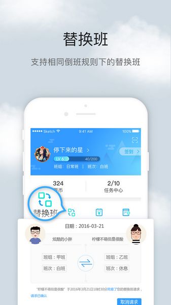 3、替换查询,可以与同班次人员调换;