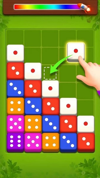 这款游戏的画面风格很清爽,属于木系风格,视觉体验舒适。玩法也很解压,主要是拖拽和合成消除,加上各种道具效果和合成效果都很细腻,玩起来挺有意思。关卡没有时间限制,玩家可以慢慢思考怎么摆放骰子。游戏里还有各种道具能帮助提高分数,比如不同的道具有不同的功能。