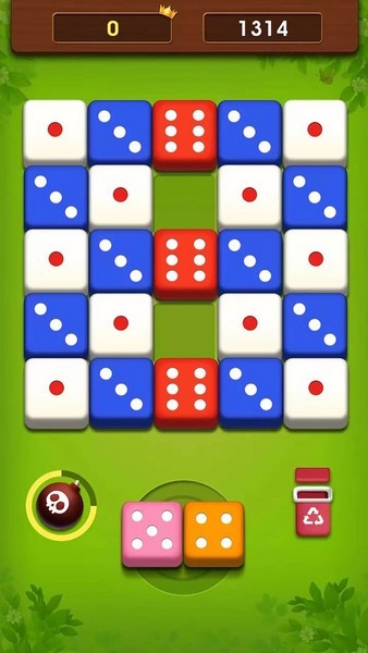 骰子消消乐是一款休闲合成游戏,主要用骰子来玩。规则很简单,只要把三个相同点数的骰子连在一起就能合并成一个更大点数的骰子,目标是通过不断合成最终得到六点的骰子。游戏中场景点数越大分数越高,但空间有限,所以要尽量快点合成。