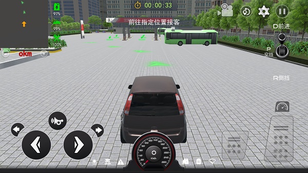 5、如图所示,这里便是城市巴士模拟器游戏主要的操作控制按钮,详细的介绍小编就不在展开描述了,基本一看就会。如果默认的按键方式不太习惯,可以通过右上角的“齿轮”位置进行操作方式的变换。