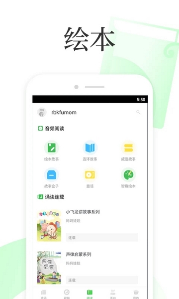 查阅到音频故事,快速查阅到绘本故事和其他绘本书籍;