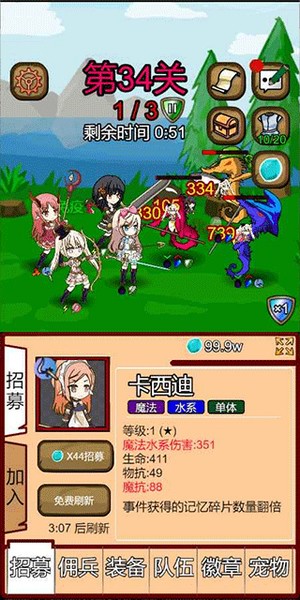 4、不同地形的怪物有不同抗性,每个地形最后一关会有boss,玩家需要结合佣兵的特点组建队伍