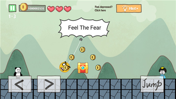 4、这关不要管前面的钥匙直接走,这里跟第一关有点类似,也有一个隐形的方块勾引出来就行,不要从云上跳,云也是个陷阱。
