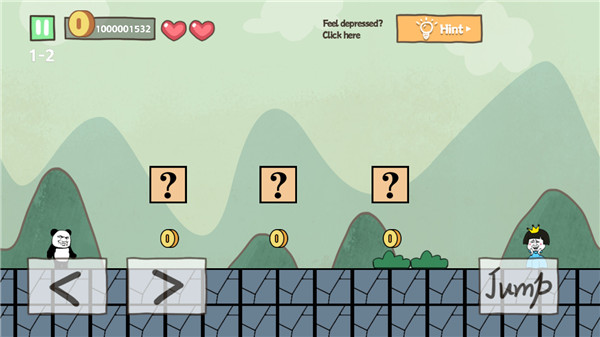 2、撞击问号方块可以获得金币,前两个没事,第三个下方会出现陷阱,可以直接跳跃到方块上过去。
