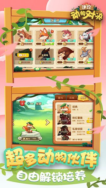 - 画面看上去非常的清新,多种不同的动物选择,能够让你在视觉上有很多不同的战斗画面体验。