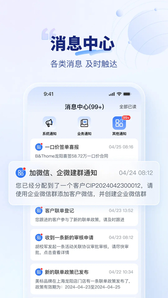通过消息中心可以一站式查收所有的工作消息内容,所有关键信息都能掌握;