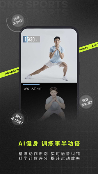 【爱动解决方案:爱动训练全部真人拍摄配合专业细致讲解,跟练更容易,通过训练计划&组队挑战,让目标更明确,更有趣!】