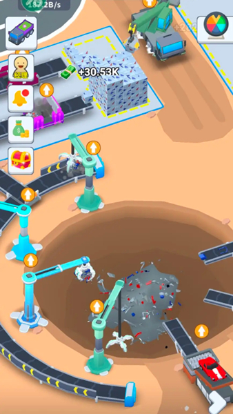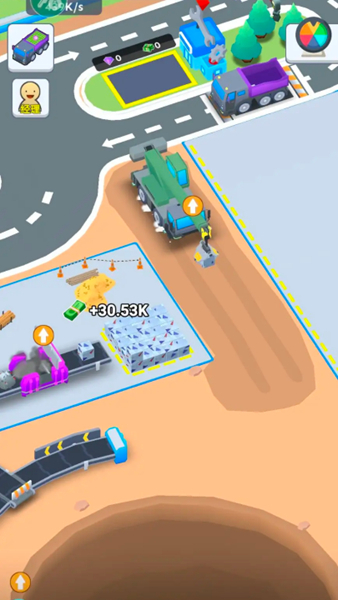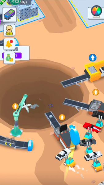 1、操控叉车将废弃车辆运送到粉碎机处,通过粉碎车辆获取资源,同时可积累金币,为后续升级做准备。
