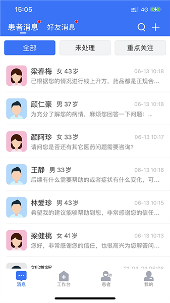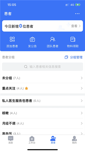 5、患者管理:随时在线新增患者、查看患者信息以及解答患者问题。