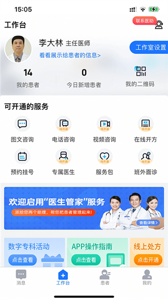 您可通过完善门诊时间、咨询时间、快捷回复等信息为自己打造一个更加舒适的使用体验;您甚至可以进行临时服务状态调整。