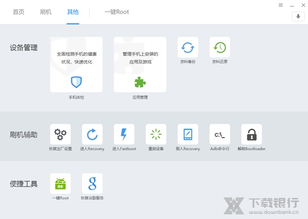 刷机精灵官方版是一款手机一键刷机软件,该软件能够帮助用户在短时间内快速刷机升级,还可以将手机内的文件进行备份,防止遗漏丢失。而且软件具有刷写ROM、Radio等功能,操作很简单,只需简单几步操作就能完成。软件内超过千种安卓手机型号,一键Root,让你更加方便刷机。更多强大的功能还请用户下载体验。