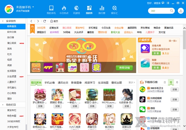 360与超过30家应用商店合作,提供超过10万款精品手机资源,最新、最潮的游戏和软件,一键下载安装。