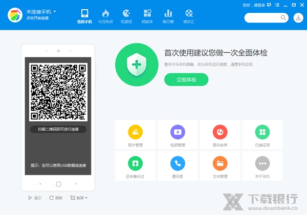 360手机助手电脑版是一款360推出的安卓手机助手,软件拥有海量软件和游戏轻松下载,炫彩主题壁纸随心点选,您可以通过它轻松下载、安装、管理手机资源,帮助你用更省流量、更快捷、更方便、更安全的方式获取网络资源,所有信息资源全部经过360安全检测中心的审核认证,绿色无毒,安全无忧。软件界面清爽简洁,操作简单,还可以帮助你检查自己手机的信息,数据还能一键备份在也不担心文件丢失等情况发生。
