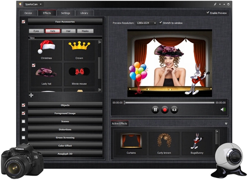 sparkocam摄像头特效软件是一款非常好用的网络摄像头工具,它能将佳能和尼康相机与电脑连接并作为网络摄像头使用,我们可以在软件中调整很多参数选项。网络摄像头用的比较多的地方自然是视频聊天、直播等,软件中有大量的背景、贴图和特效可以选择,让你的镜头内容更加丰富,使视频和直播增添更多的乐趣。除了摄像机外,它也支持捕捉电脑屏幕或窗口,同时提供视频录制功能。