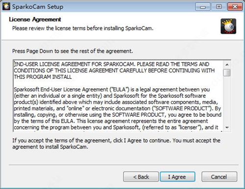 2、打开文件SparkoCamInstaller.exe,点击I Agree;