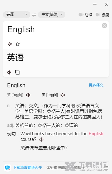 - 权威词典:收录权威词典,本地10万词条,云端500万词条,联网情况下还有网络释义、同反义词、例句和百度百科等丰富结果