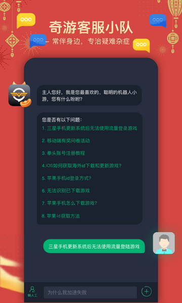 奇游客服小队7x12h陪伴你的左右。使用过程中有任何疑问和反馈,我们随时待命。
