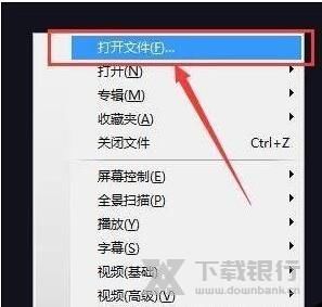 2、在播放器中间点击鼠标右键,在弹出的选项中点击【打开文件】,选择您要播放的视频。