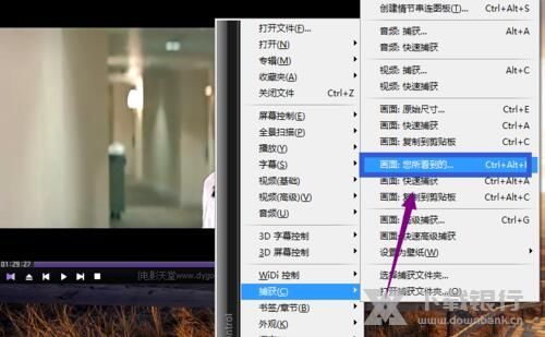 4、如果您要截屏,您可以在视频中点击鼠标右键,在弹出的选项中点击【捕获】然后选择您需要截取的方法就可以截屏了。