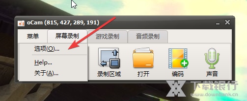 1、很多用户发现oCam录屏软件电脑版中录屏时,出现了视频画面不清晰的情况,其实很有可能是因为视频质量过低所导致的,如果你想要调整视频质量,只需点击上方的“菜单”,选择其中“选项”,如下图所示: