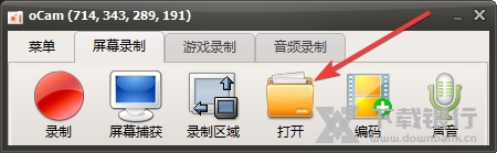 1、当你oCam录屏软件电脑版中成功录制完成视频后,点击中止停止选项将视频保存到本地后,只需在主界面点击“打开”即可进行查看,如下图所示: