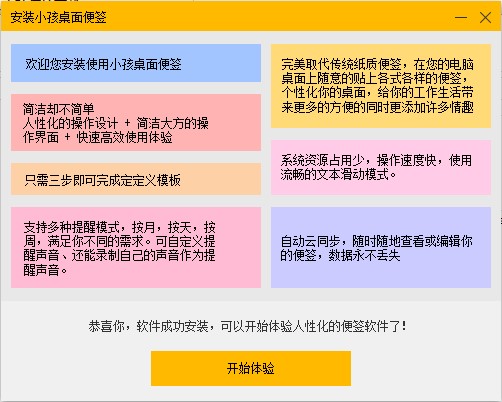 小孩桌面便签软件是一款简单易懂的桌面提醒软件。用户可以把当天要安排的事情记录下来都进行记录,软件界面简洁,功能十分丰富。软件还有许多精美的皮肤模板等你体验根本没广告而且还十分的小巧根本不占有你电脑上的体体积。用户还可自定义添加多个办公事项,多样的背景颜色,打造属于你的个性标签,还可设置闹钟提醒,防止你错过任何事项,非常的便利。让你不再忘记重要事项,完全就是为用户方便而打造的标签提醒软件。