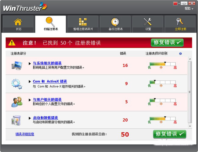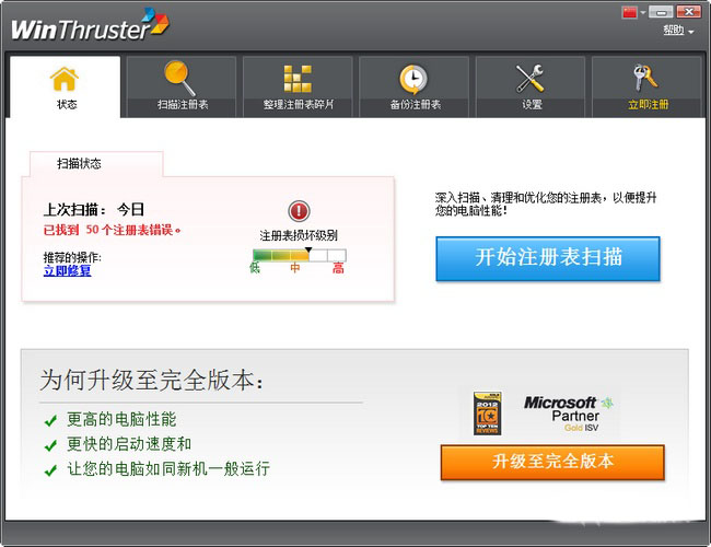 WinThruster破解版是一款来自国外软件的系统安全优化工具,想必大家都遇到过电脑无缘无故蓝屏吧,很大一部分是因为注册表的问题导致的,所以小编今天就带来这款软件能够帮助你对注册表的错误检测和修复,它拥有扫描、整理、备份注册表等多种功能,且操作简便,只需简单的单击操作即可快速完成对注册表的操作功能。此版本为破解版,免注册码,有需要的用户不妨下载试试吧!