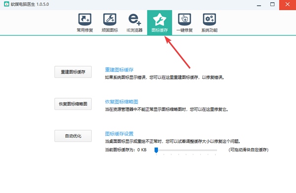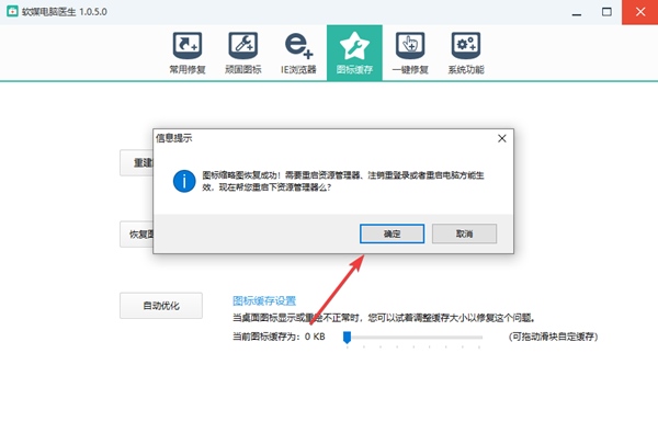 2、点击图标缓存中的重建图标缓存,然后点击确定进行下一步