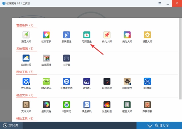 1、首先开打软件下的应用大全点击电脑医生