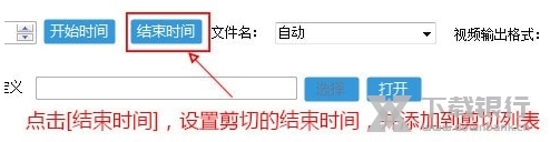 4. 继续播放或拖动进度条到结束时间,点击[结束时间],设置剪切的结束时间,并加入到剪切列表。
